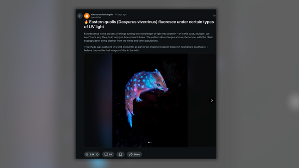 The creature is an eastern quoll, an Australian marsupial that is about the size of a domestic cat.