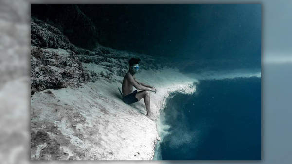 Real Pic of Man Sitting on Edge of 'Underwater Cliff'?
