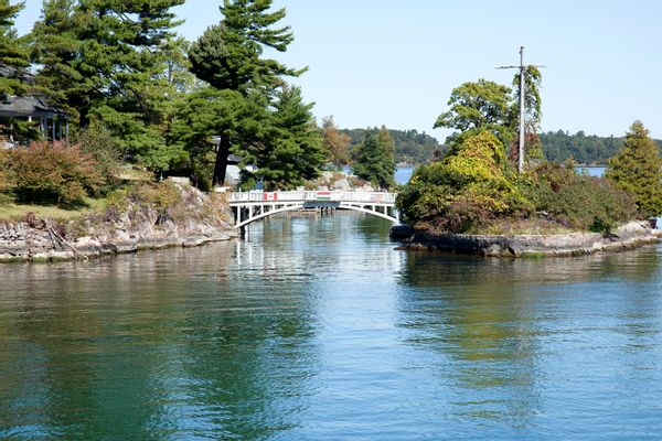 The bridge, which connects Ontario's Zavikon Island with a smaller island, is indeed real.