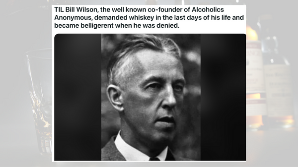 The story of Wilson's whiskey deathbed request has been discussed within the recovery community.